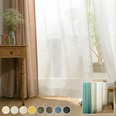 リネン85%ナチュラルなインテリアに合う大きな窓でも美しいシームレスレースカーテン