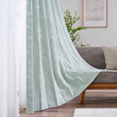 水彩タッチのリーフ柄に癒される完全1級遮光カーテン