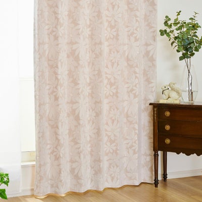 やさしい色合いの小花がフェミニンなトルコ刺繍レースカーテン シャルム(L-8205)