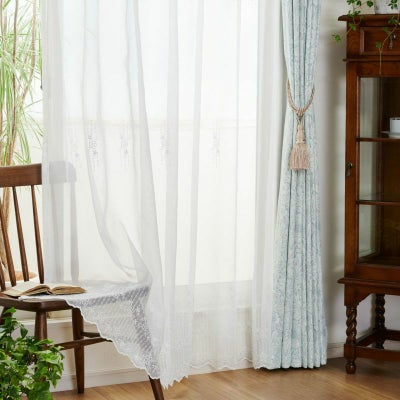 愛らしい花々の刺繍が美しいフェミニンな印象のトルコ刺繍レースカーテン