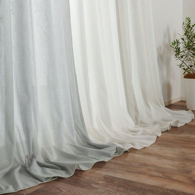 リネン85%ナチュラルなインテリアに合う大きな窓でも美しいシームレスレースカーテン