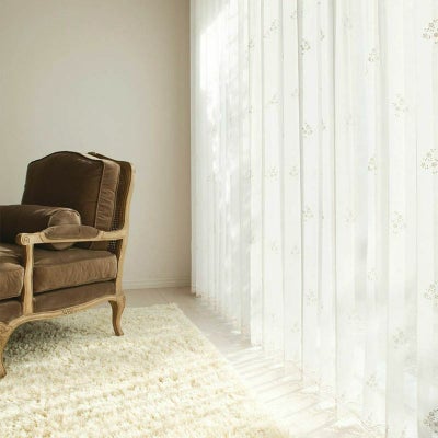 きらきらと咲き誇る草花の上品な刺繍が美しいボイルレースカーテン フィリス(L-1296)