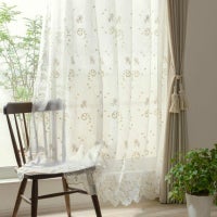 ナチュラルな風合いの草花や動物の刺繍がおしゃれなレースカーテン マーシャ(L-1296)