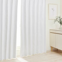 寝室の東の窓用に購入しました。雨戸がなく朝日が眩しく目が覚めるのが悩みでしたが、完全に光を遮断してくれるので目覚ましが鳴るまでぐっすりと眠れるようなりました。壁紙やインテリアが白なので、白で探していました。このカーテンはバッチリ部屋に馴染み嬉しかったです。部屋が明るくすっきりと見えて、エレガントな柄で寝室全体が上品にまとまりとても満足しています。 1つだけ気になる点があります。 完全遮光のカーテン生地がしっかりとしている為か、継ぎ目の縫合はとても丁寧なのですがそこから光が漏れて目立ちます。夜は全く気にならないのですが日中は目がいきます。 2倍ヒダでオーダーしましたが、1.5倍ヒダにしておけばもしかしたら継ぎ目がなく気にならないで更に良かったのかなぁと思います。 白に絞ってどれにしようかと悩んでましたが、サンプルで気になるものを全て取り寄せて送っていただきました。 写真で閲覧していた第一候補と、実際に見て「コレだ!」と思った物が違ったので、サンプルを取り寄せて素敵なカーテンに出会えて良かったです。 ありがとうございました。