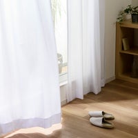 リネン85%ナチュラルなインテリアに合う大きな窓でも美しいシームレスレースカーテン