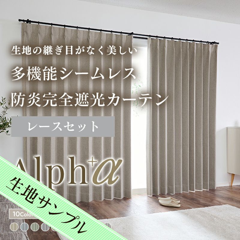 《set》10色 多機能シームレス防炎完全遮光カーテン アルファ(D-1801)レースセット生地サンプル