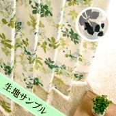 水彩タッチのリーフ柄に癒される完全1級遮光カーテン