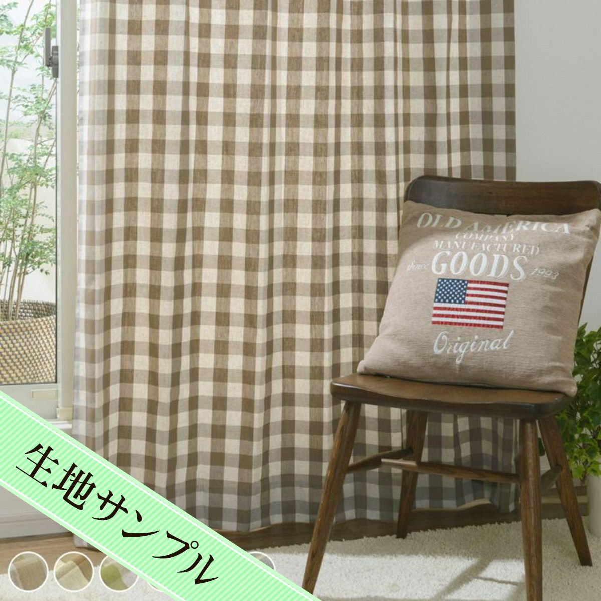 ナチュラル&ベーシックスタイルカーテン チェック柄 ソイル(D-1196)生地サンプル